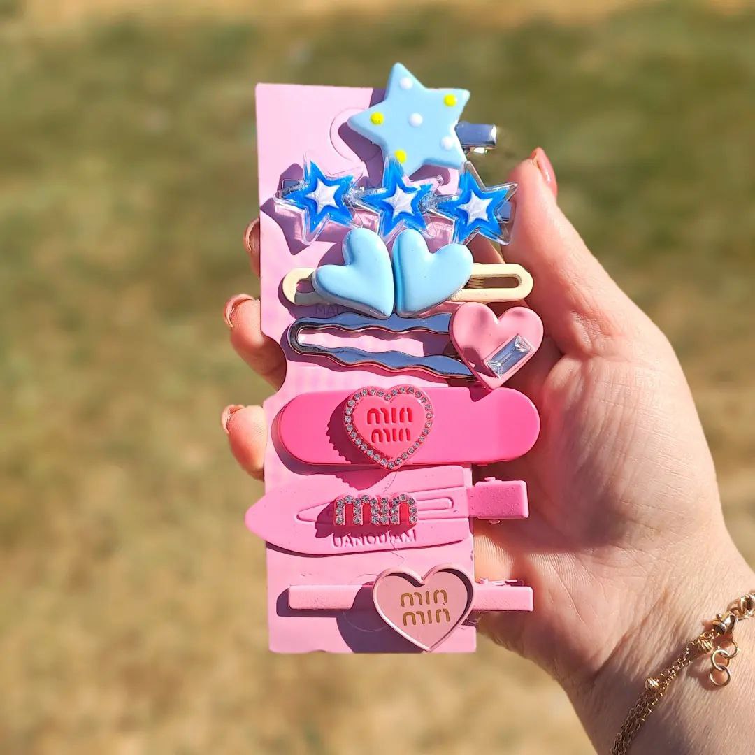 ست گیره مو فانتزی صورتی از گیره موهای بسیار محبوب و پرطرفدار محسوب میشود. تعداد گیره موهای این ست هفت عدد است. تم اصلی این گیره موها صورتی است که با رنگهای دیگری مانند آبی ترکیب شده است. بدنه گیره موها فلزی و همچنین پلی استر است. دیزاین این ست گیره مو، فلزی، کریستال، پلاستیک نشکن و سیلیکون است. سایز گیره موها بین 5/5 تا 7 سانتیمتر است. برای مراسمها، جشنها و همچنین مصرف روزانه گزینه بسیار عالی است. طرفداران استایلهای فانتزی در سفارش این پک گیره مو تردید نداشته باشند. این ست گیره مو همچنین گزینه عالی برای هدیه به عزیزان و دوستانتان است. نمونه دیگری از این ست موهای شیک را در [این صفحه] و همچنین انواع گیره موهای مجلسی را در [این صفحه] حتما ببینید.
