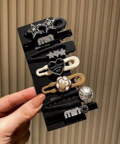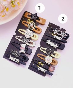 ست گیره مو پاپیون و ستاره در رنگ مایلارد و مشکی شامل شش مدل متفاوت و شیک است. طرحهای آن ستاره، گل مرواریدی، قلب نگین دار، پاپیون و حروف فلزی است. طراحی این گیره موها با ترکیب رنگهای مشکی، طلایی و مایلارد است. به همین دلیل جلوه ای لوکس به استایل شما می بخشد. این ست گیره مو برای استفاده در مهمانی ها، جشنها و عروسیها و حتی استایل روزانه مناسب است. اگر به دنبال اکسسوری مو شیک، خاص و چند کاره هستید این ست کامل در دو ست مختلف می تواند بهترین انتخاب شما باشد. علاوه بر ست گیره مو پاپیون و ستاره، ست تم مشکی مرواریدی را در [این صفحه]، ست گیره مو استیل بسیار شیک را در [این صفحه] و مجموع ست گیره موهای مجلسی را در [این صفحه] حتما ببینید.