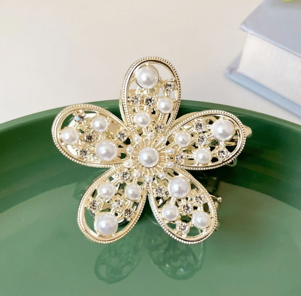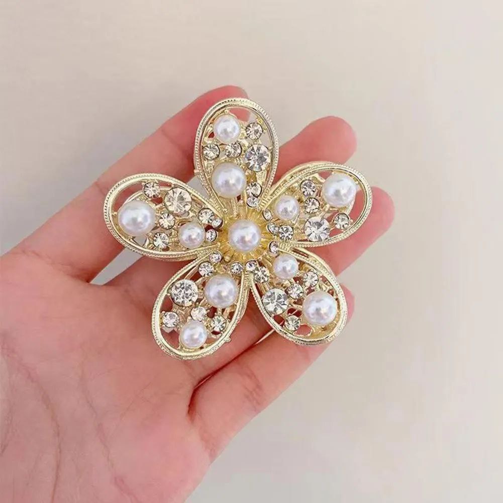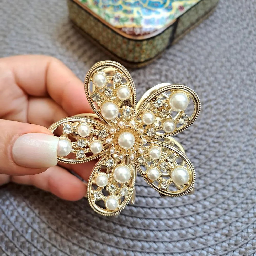 کلیپس مو گل پنج پر مجلسی یک انتخاب زیبا و لوکس برای خانمهایی است که به استایل شیک و متفاوت علاقه دارند. طراحی این کلیپس به شکل گل پنج پر است. تزئین سطح آن از مرواریدهای درخشان و نگینهای کریستالی است که جلوهای بسیار خاص و چشمنواز ایجاد میکند. رنگ طلایی بدنه کلیپس در کنار درخشش مروارید و نگینها این اکسسوری را به راحتی با لباسهای مجلسی، عروسی یا حتی استایلهای رسمی ست میکند. این کلیپس نه تنها موها را بهخوبی جمع و مرتب میکند، بلکه به ظاهر شما ظرافت و جذابیت بیشتری میبخشد. انتخابی عالی برای مهمانیها، جشنها و مراسم خاص. برای دیدن نمونههای بیشتر از کلیپس موهای مجلسی به [این صفحه] و برای دیدن تنوع کمنظیری از کلیپسهای روزانه و مجلسی به [این صفحه] مراجعه بفرمایید.