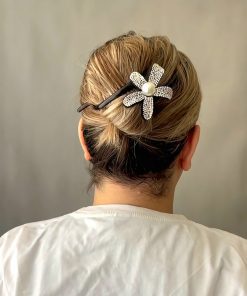 گیره مو چفتی پلی استر با طراحی گل دار و نگینی انتخابی عالی برای خانمهایی است که زیبایی و کیفیت برایشان اهمیت دارد. جنس پلی استر مرغوب ماندگاری و مقاومت در برابر شکستگی را تضمین می کند. استفاده از این گیره مو چفتی، بدون آسیب به مو، ظاهری مرتب و شیک ایجاد می کند. این مدل با نگین های براق و مروارید مرکزی، جلوه ای لوکس به استایل روزانه یا مجلسی می بخشد. وزن سبک و سایز استاندارد ده سانتی متری راحتی استفاده را تضمین می کند. این گیره مو برای موهای حجم متوسط و پرحجم مناسب است. تنوع رنگ شامل، دودی، ترکیبی و نقره ای امكان ست با انواع لباس را فراهم می کند. گیره مو چفتی پلی استر علاوه بر مصرف روزمره و برای مهمانی ها و جشنها و مجالس گزینه ای مناسب برای برای هدیه به عزیزان نیز محسوب می شود. برای دیدن نمونه کلیپس این چفتی به [این صفحه]، گل سرامیکی این گیره مو به [این صفحه] ، نمونه گل و سنگ تزئینی به [این صفحه] و برای دیدن انواع مختلف گیره چفتی به [این صفحه] مراجعه بفرمایید.
