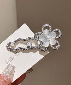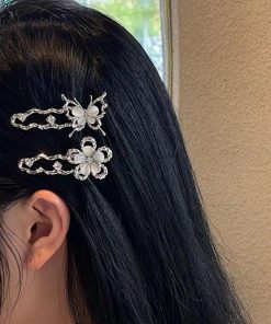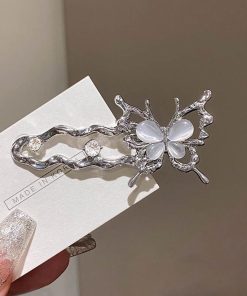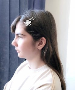 گیره مو گل و پروانه فانتزی فلزی نقره ای