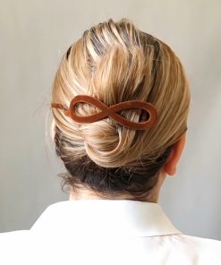 گیره چفتی طرح بی نهایت روکش مخملی از شیک ترین گیره موهای چفتی است. این گیره مو 11 سانتی متری با پایه پلاستیک و روکش مخملی برای موهای با حجم متوسط و پرحجم مناسب است. این گیره مو در سه رنگ جذاب زرشکی، نسکافه ای و مشکی عرضه می شود و به راحتی با لباس های مختلف ست می شود. چفت محکم این گیره، موها را محکم و ثابت نگه می دارد. به دلیل وزن سبک هیچ فشاری روی موها و كف سر وارد نمی کند. گیره چفتی طرح بی نهایت روکش مخملی برای مصرف روزمره، دورهمی ها و مهمانی های دوستانه و همچنین برای محل کار، دانشگاه و مدرسه بسیار مناسب است. اگر به دنبال گیره ای برای نظم دهی به پشت موها و همچنین استایل شیک برای موهایتان هستید پیشنهاد ما این گیره مو است. نمونه شمعی این گیره مو را در [این صفحه] و انواع مختلف گیره مو چفتی روزانه و مجلسی را در [این صفحه] حتما ببینید.