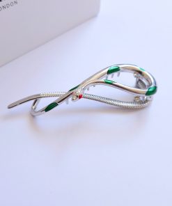 گیره مو چفتی طرح مار از چفتی های فانتزی و بسیار خاص در بین گیره موهای چفتی است. این گیره مو تک رنگ و نقره ای است که بر روی آن رنگ سبز هم وجود دارد. پایه گیره فلزی است. سایز طول آن یازده سانتی متر و عرض آن سه سانتی متر است. برای موهای با حجم کم، متوسط و رو به پرحجم مناسب است. فنر بسیار مقاومی دارد. برای نظم بخشی به پشت موها و همچنین استایل خاص و متفاوت گزینه بسیار عالی است. برای مصرف روزمره، مهمانی ها جشن ها، مراسمها و موقعیت های مختلف کاربرد دارد. این محصول وارداتی است. اگر به دنبال گیره مو متفاوت، شیک، مقاوم و خاص هستید گیره چفتی طرح مار پیشنهاد ما به شماست. همچنین می توانید برای دیدن انواع گیره چفتی های روزانه و مجلسی به [این صفحه] و انواع گیره مو روزانه و مجلسی به [این صفحه] مراجعه بفرمایید.