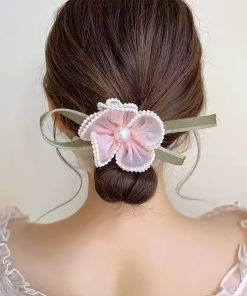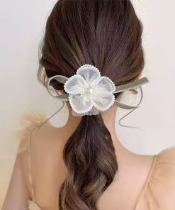 اسکرانچی حریر طرح گل کاملیا و مروارید