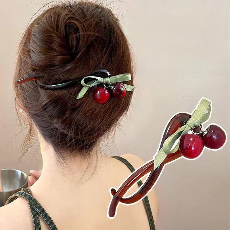 با گیره مو چفتی گیلاس و پاپیون جذاب استایل موهایتان را شیرین و دلنشین کنید. این گیره چفتی با طراحی منحصر به فرد، دارای دو آویز گیلاس براق و یک پاپیون ظریف است که جلوه خاص به موهایتان می دهد. سایز این گیره چفتی 10/5 سانتی متر است و برای موهای حجم کم، حجم متوسط و حجم رو به پر مناسب است. این گیره مو علاوه بر مصرف روزمره برای مهمانی ها، دورهمی ها و مجالس رسمی مناسب است. قفل محکم آن موها را به راحتی ثابت نگه می دارد. وزن سبک آن نیز هیچ نوع فشاری به موها وارد نمی کند. اگر به دنبال اکسسوری مو جذاب، جدید، کاربردی و خوش قیمت هستید پیشنهاد ما قطعا گیره چفتی گیلاس و پاپیون زیبا و جذاب است. برای دیدن نمونههای متنوع گیره موهای چفتی [این صفحه] و انواع گیره مو روزانه و مجلسی حتما [این صفحه] را هم ببینید.
