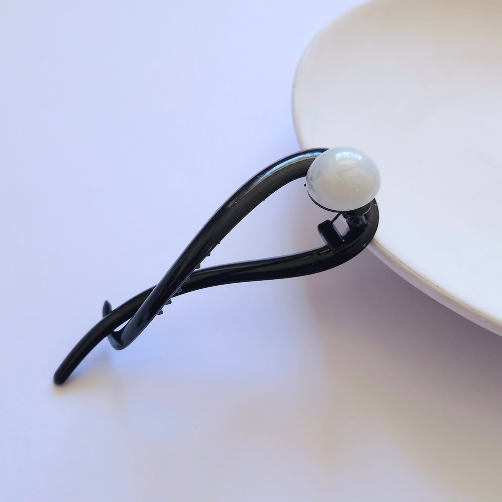تزئین سطح این گیره با یک مروارید مصنوعی مرکزی است. برخلاف گیره موهای کوچک مکانیزم چفتی این گیره مو، چسبندگی قویتری را فراهم میکند تا موهای متوسط و پرحجم را به زیبایی نگه دارد.
