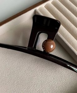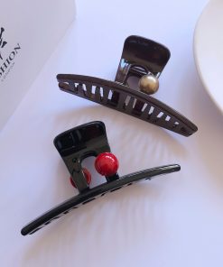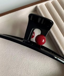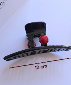 رنگ و طرح: بدنه کلیپس مو اکرولیک بزرگ مشکی و زرشکی با یک گوی قرمز در مرکز.