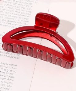 طرح روبانی و هلالی این کلیپس جلوهای شیک و مدرن به آن میبخشد. رنگ قرمز درخشان آن، انتخابی عالی برای استایلهای جسورانه، مهمانیها و استفاده روزانه است. این گیره مو بزرگ و محکم برای موهای با حجم متوسط و پرحجم مناسب است.