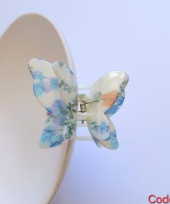کلیپس پروانه آبرنگی با الهام از نقوش آبرنگی و طرحهای ابر و باد و مرمر جلوهای شبیه به سرامیک دارد. طرحی فوقالعاده شیک و چشمنواز برای اکسسوری مو. این مینی کلیپس پنج سانتی بهترین انتخاب برای جمع کامل موهای کم پشت و حجم متوسط و نیمه باز برای موهای پرحجم و بلند است.