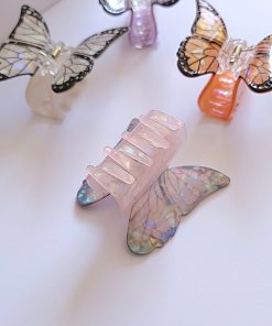 سایز این کلیپس مو هفت سانتیمتر است. برای هر حجم مو مناسب است و به شکلهای مختلف جمع و نیمه باز میتوان از آن استفاده کرد. کلیپس پروانهای شیشهای در چهار رنگ پاستیلی و بسیار زیبای یاسی، صورتی، هلویی و کرم عرضه میشود. اگر به دنبال کلیپس شیک فانتزی هستید این کلیپس مخصوص شماست. برای دیدن نمونه پروانه شیشه ای ست سه عددی به [این صفحه] نمونه دیگری از کلیپس پروانهای به [این صفحه] و برای دیدن انواع کلیپس مو روزانه به [این صفحه] و کلیپسهای مجلسی به [این صفحه] مراجعه بفرمایید.